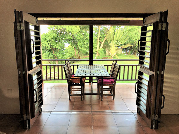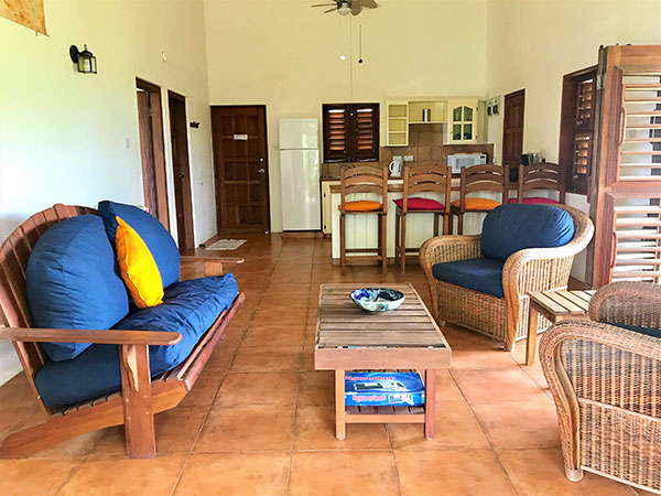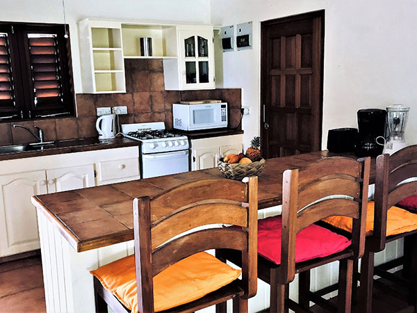The Apartment and Studios include - Private verandas with panoramic sea and beach views - Ceiling fans and side fans in bedrooms - Air-conditioning in bedrooms ($5 per day) - Four poster beds with mosquito nets - Hairdryers - All bathrooms have showers - Daily cleaning (towel & linen change every 3 days) - Beach towels - Safe - Fully equipped kitchens with microwave, large fridge/freezer, oven, toaster kettle and coffee maker - Welcome pack of tea and coffee |
